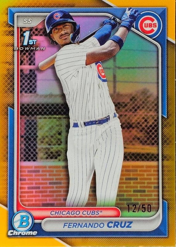 FERNANDO CRUZ 2024 BOWMAN CHROME PROSPECT 1ST CUBS GOLD REFRACTOR 46/50