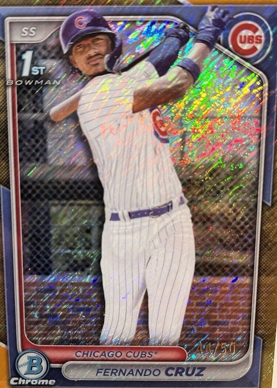 2024 Fernando Cruz Bowman Chrome 1st Gold Shimmer Refractor Chicago Cubs /50