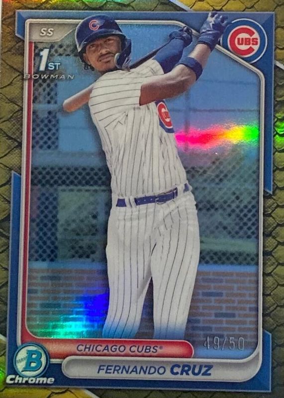 Fernando Cruz (Cubs) 2024 Bowman Chrome #BCP-197 Prospects - Reptilian Gold Refractor /50 (1st) RAW Price Guide