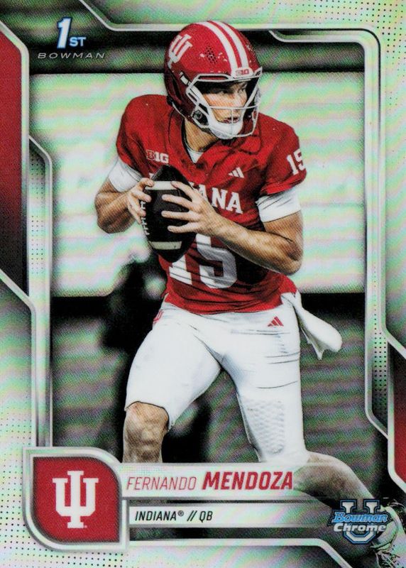 Fernando Mendoza 2025 Bowman Univ Chrome Chrome Refractor 1st Bowman Indiana B