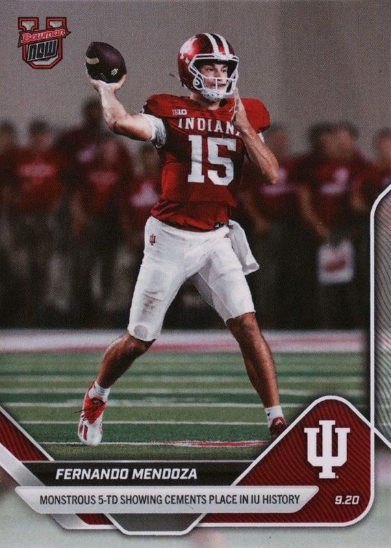 Fernando Mendoza Indiana 5 TD 2025-26 Bowman U NOW Football Card 17 In Hand