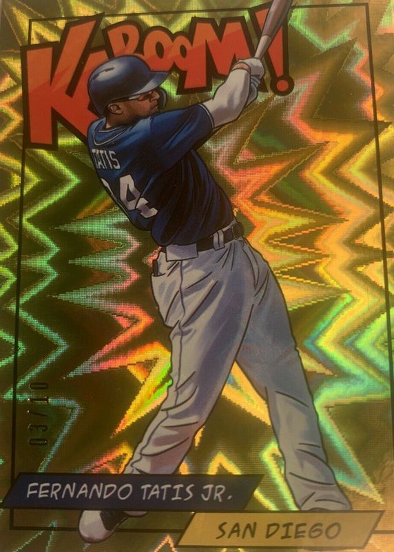 The Fernando Tatis Jr. 2018 Panini Rewards #K-FT Kaboom! - Gold /10 card in Raw condition has not changed in price in the last 30 days and was last sold for $3,600.00 .