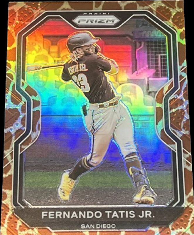 The Fernando Tatis Jr. 2021 Prizm #161 Giraffe card is 1 of 90 Fernando Tatis Jr.'s card variations in the 2021 Prizm set being tracked by Sports Card Investor, including Base, Blue, Blue Velocity, Carolina Blue, and Cosmic Haze.