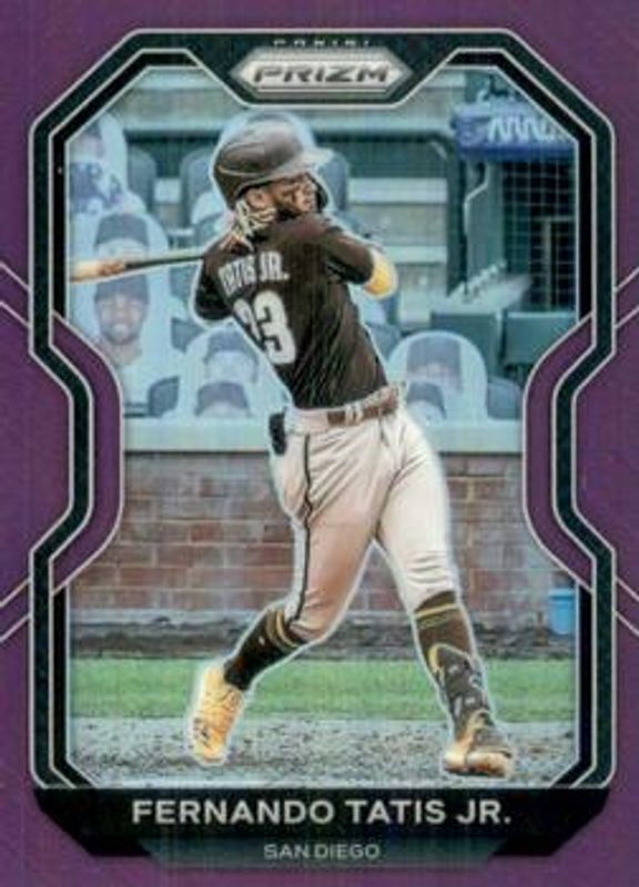 The Fernando Tatis Jr. 2021 Prizm #161 Purple card is 1 of 90 Fernando Tatis Jr.'s card variations in the 2021 Prizm set being tracked by Sports Card Investor, including Base, Blue, Blue Velocity, Carolina Blue, and Cosmic Haze.
