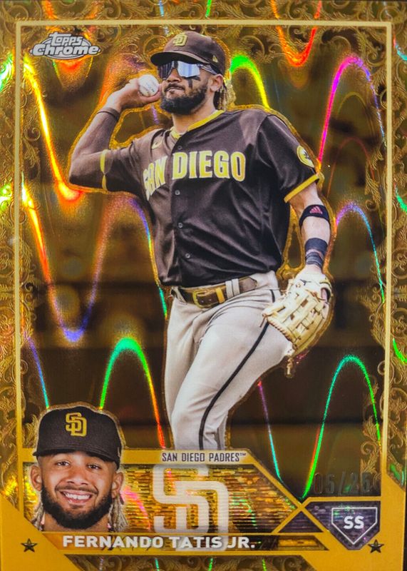 This card is 1 of 12 Fernando Tatis Jr.'s card variations in the 2023 Topps Gilded Collection set being tracked by Sports Card Investor, including Base /99, Wave Gold Etch Refractor /75, Mini-Diamond Gold Etch Refractor /50, Lava Gold Etch Refractor /10, and Superfractor /1.