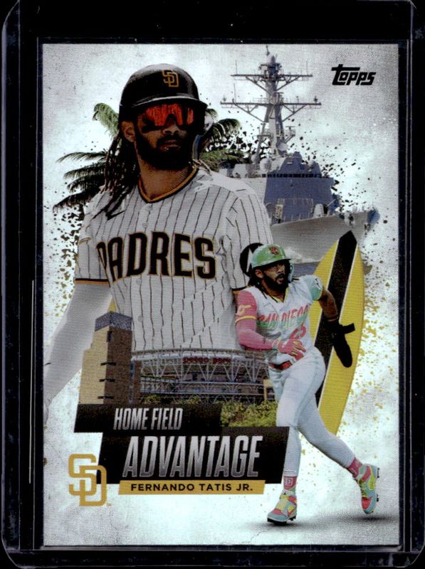 The Fernando Tatis Jr. 2025 Topps #HA-10 Homefield Advantage card is 1 of 292 Fernando Tatis Jr.'s card variations in the 2025 Topps set being tracked by Sports Card Investor, including Base, Aqua Holo Foil, Diamante Foil, Holo Foil, and Pink Diamante Foil.