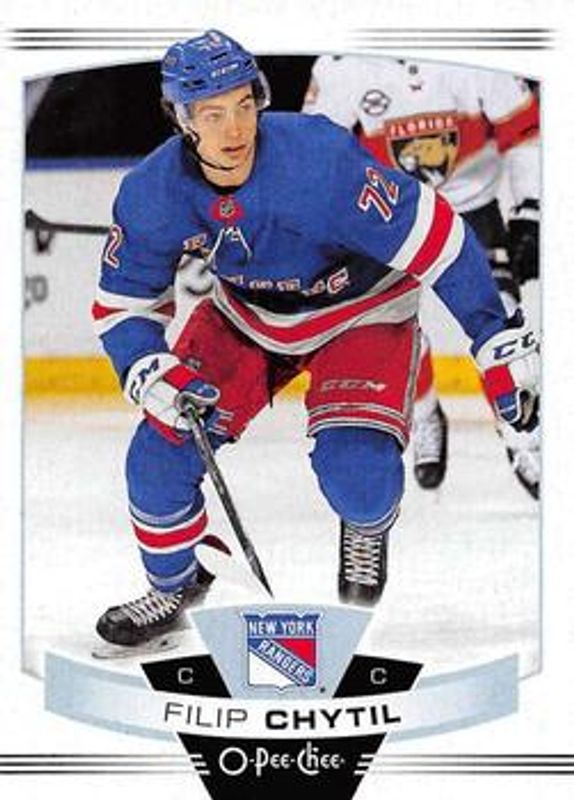 The Filip Chytil 2019 O-Pee-Chee #179 Base card is 1 of 8 Filip Chytil's card variations in the 2019 O-Pee-Chee set being tracked by Sports Card Investor, including Blue Border, Gold Border, Red Border, Red Border Blank Back, and Retro.