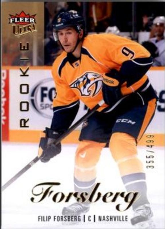 The Filip Forsberg 2013 Fleer Showcase #59 Ultra /499 Rookie card is 1 of 6 Filip Forsberg's card variations in the 2013 Fleer Showcase set being tracked by Sports Card Investor, including Base /175, Ultra Red Medallion /99, Red Glow /27, Ultra Platinum Medallion /25, and White Hot /3.