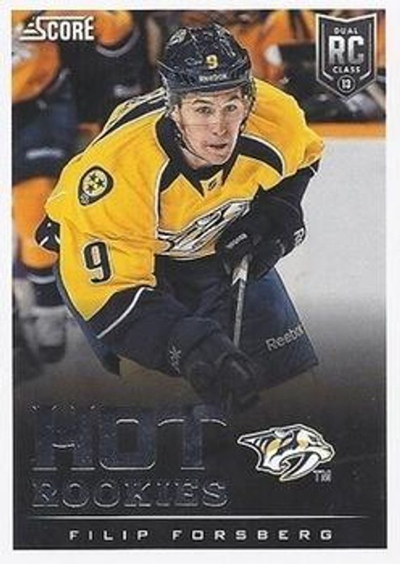 The Filip Forsberg 2013 Score #630 Red Back Rookie card is 1 of 6 Filip Forsberg's card variations in the 2013 Score set being tracked by Sports Card Investor, including Base, Black, Gold, Red, and Rising Stars 25th Anniversary.