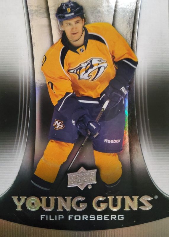 The Filip Forsberg 2013 Upper Deck #451 Young Guns - Acetate Rookie card in Raw condition has not changed in price in the last 30 days and was last sold for $499.99 .