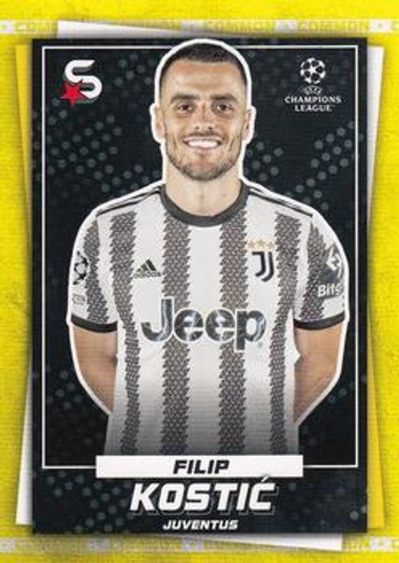 The Filip Kostic 2022 Topps UEFA Superstars #88 Common Yellow card is 1 of 16 Filip Kostic's card variations in the 2022 Topps UEFA Superstars set being tracked by Sports Card Investor, including Base, Common Yellow, Fire & Ice Limited, Molten Rare, and Mystic.