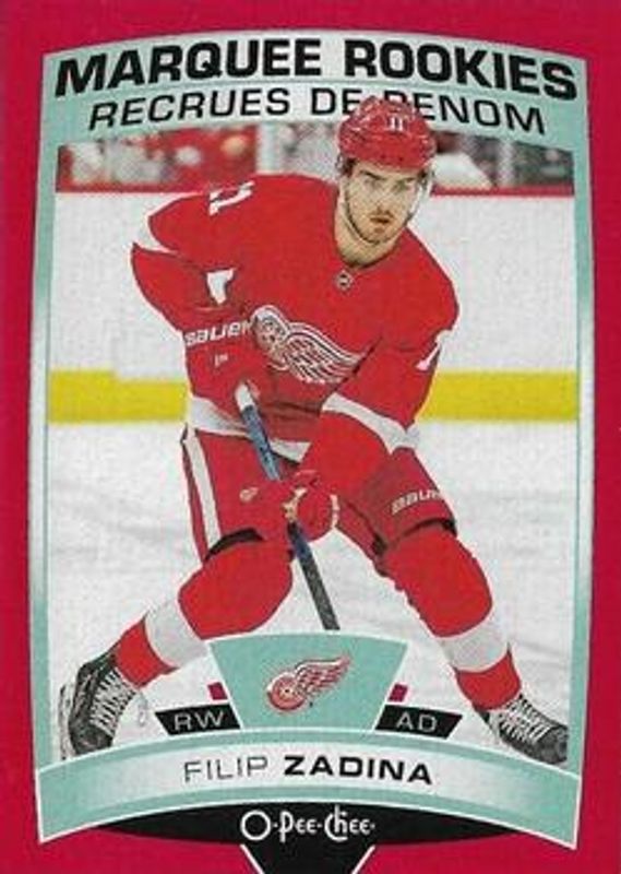 The Filip Zadina 2019 O-Pee-Chee #501 Red Border Blank Back Rookie card is 1 of 12 Filip Zadina's card variations in the 2019 O-Pee-Chee set being tracked by Sports Card Investor, including #500 Base, #501b Base, #501c Base, #501d Base, and #501 Blue Border.