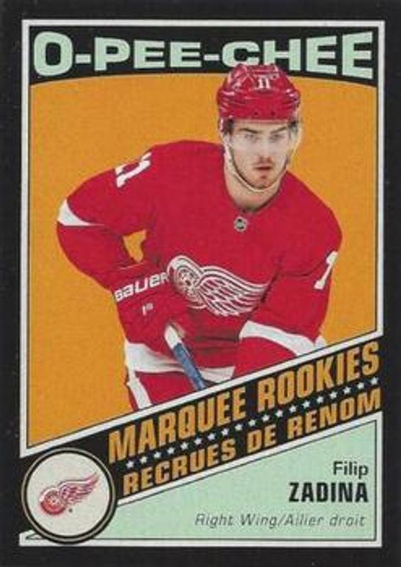 The Filip Zadina 2019 O-Pee-Chee #501 Retro Black Border /100 Rookie card is 1 of 12 Filip Zadina's card variations in the 2019 O-Pee-Chee set being tracked by Sports Card Investor, including #500 Base, #501b Base, #501c Base, #501d Base, and #501 Blue Border.
