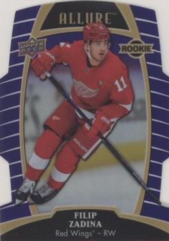 The Filip Zadina 2019 Upper Deck Allure #81 Purple Diamond /10 Rookie card is 1 of 42 Filip Zadina's card variations in the 2019 Upper Deck Allure set being tracked by Sports Card Investor, including #103 Base, #81 Base, #81 Pewter, #103 Pink Diamond, and #81 Red Rainbow.