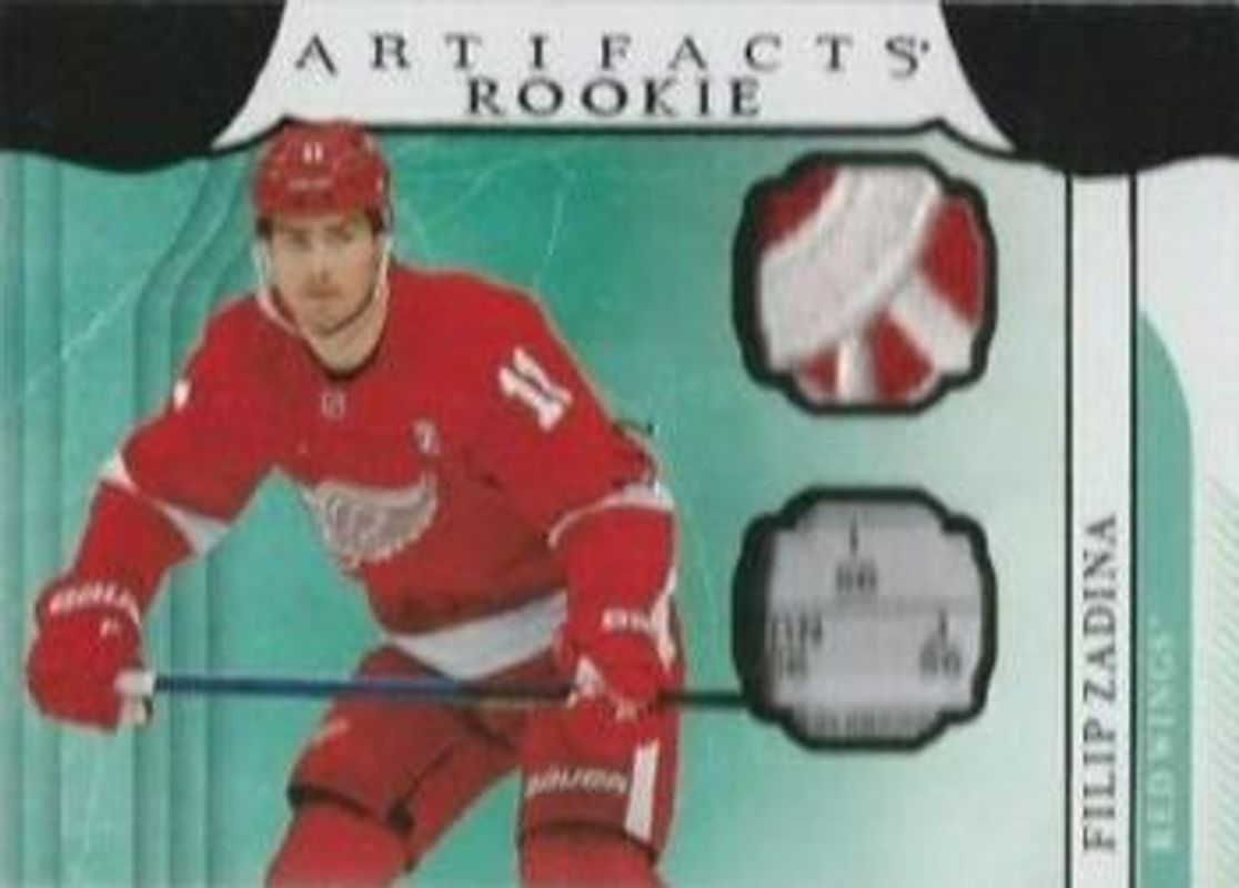 The Filip Zadina 2019 Upper Deck Artifacts #165 Horizontal Materials - Black /2 Rookie card is 1 of 23 Filip Zadina's card variations in the 2019 Upper Deck Artifacts set being tracked by Sports Card Investor, including Base /999, Ruby /399, Copper /299, Emerald /99, and Aqua /45.