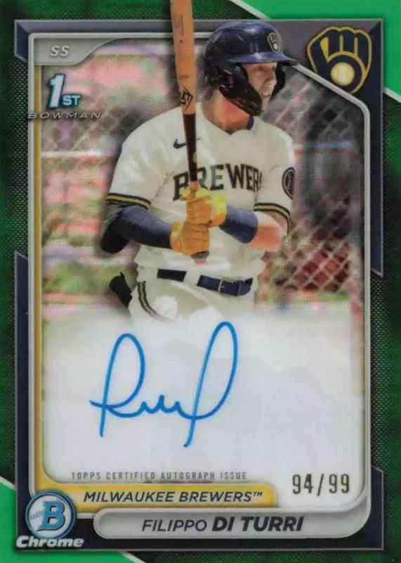 2024 Bowman Chrome Filippo Di Turri #CPA-FDI Green Refractor Auto /99 Brewers