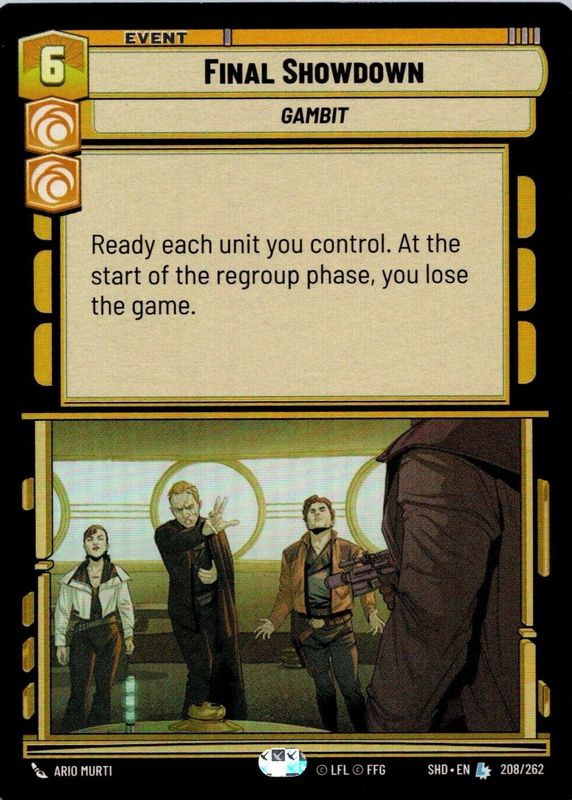 This card is 1 of 4 Final Showdown's card variations in the 2024 Shadows of the Galaxy set being tracked by Sports Card Investor, including Base, Hyperspace, and Hyperspace Foil.