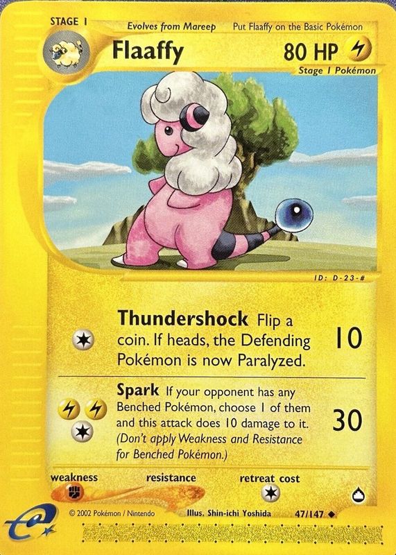 The Flaaffy 2003 Aquapolis #047/147 Base card in Raw TCG (Near Mint) condition has moved up $5.99 (+74.9%) in the last 30 days and was last sold for $13.99 .