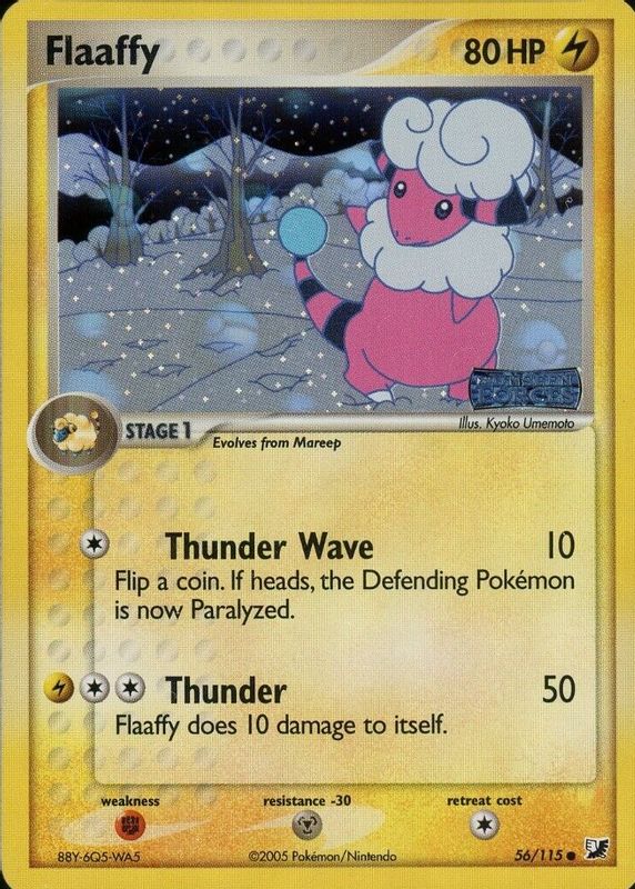 The Flaaffy 2005 EX: Unseen Forces #056/115 Reverse Holo card in Raw TCG (Near Mint) condition has not changed in price in the last 30 days and was last sold for $8.50 .