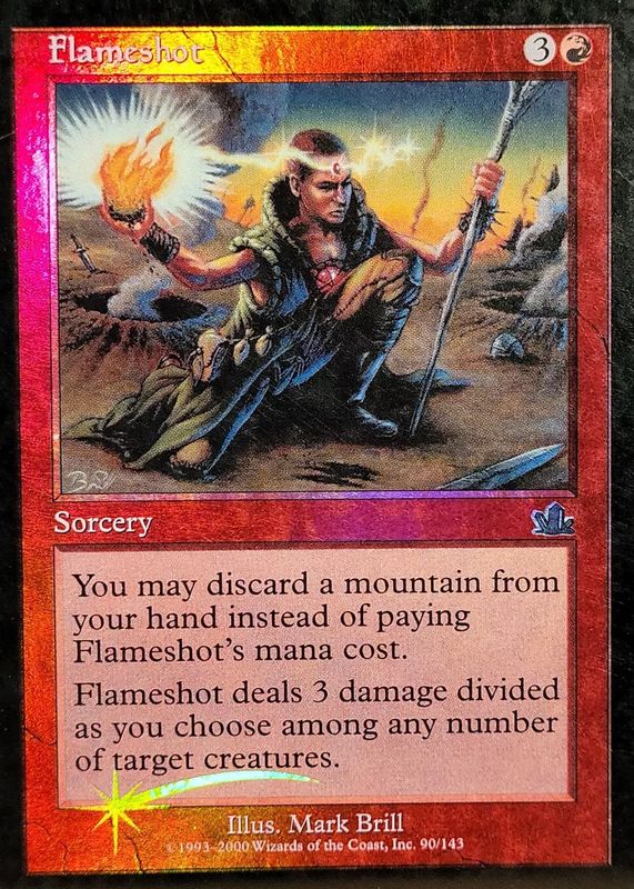The Flameshot 2000 Prophecy #90 Foil card in Raw TCG (Lightly Played) condition has not changed in price in the last 30 days and was last sold for $4.88 .