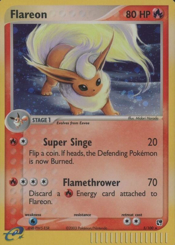 Flareon 2003 EX: Sandstorm #005/100 Holo RAW TCG (NEAR MINT) Price Guide