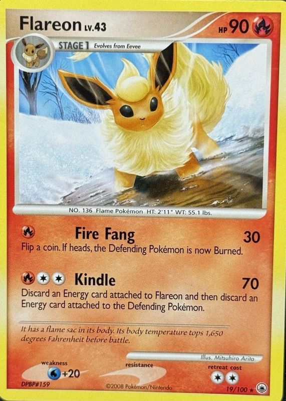 Flareon 2008 Diamond & Pearl: Majestic Dawn #019/100 Base RAW TCG (LIGHTLY PLAYED) Price Guide