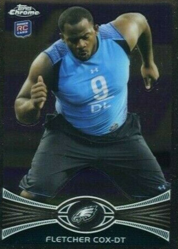 Fletcher Cox's Football cards are available in at least 12 sets. Fletcher Cox's biggest 7-day price movers are 2012 Topps Chrome #82 Base, 2012 Contenders #137 Rookie Ticket Auto, and 2012 Topps Chrome #82 Refractor.