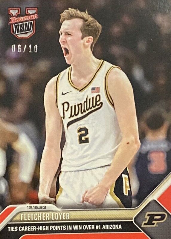 This card is 1 of 6 Fletcher Loyer's card variations in the 2023 Bowman U Now set being tracked by Sports Card Investor, including Base (Print Run: 221), Blue /49, Purple /25, Orange /5, and Gold /1.