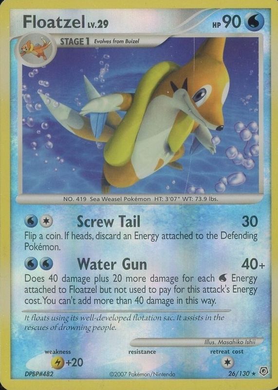 2007 Pokemon, Diamond & Pearl, #26/130 Floatzel, Reverse Holo Rare
