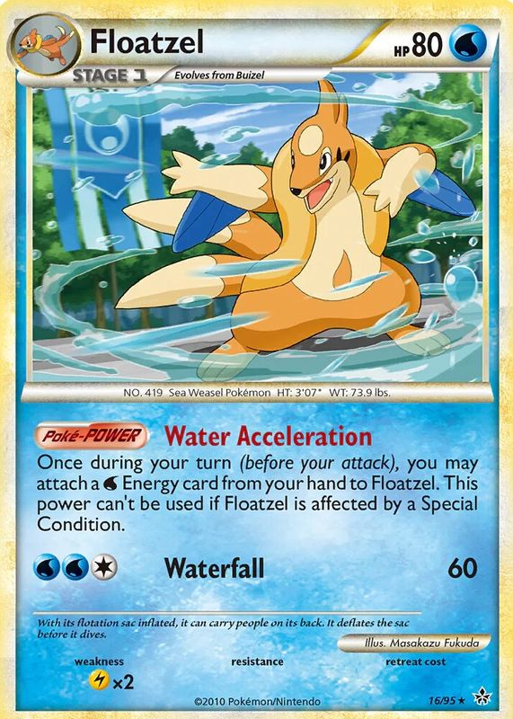 The Floatzel 2010 HeartGold & SoulSilver: Unleashed #16/95 Base card in Raw TCG (Lightly Played) condition has not changed in price in the last 30 days and was last sold for $0.99 .