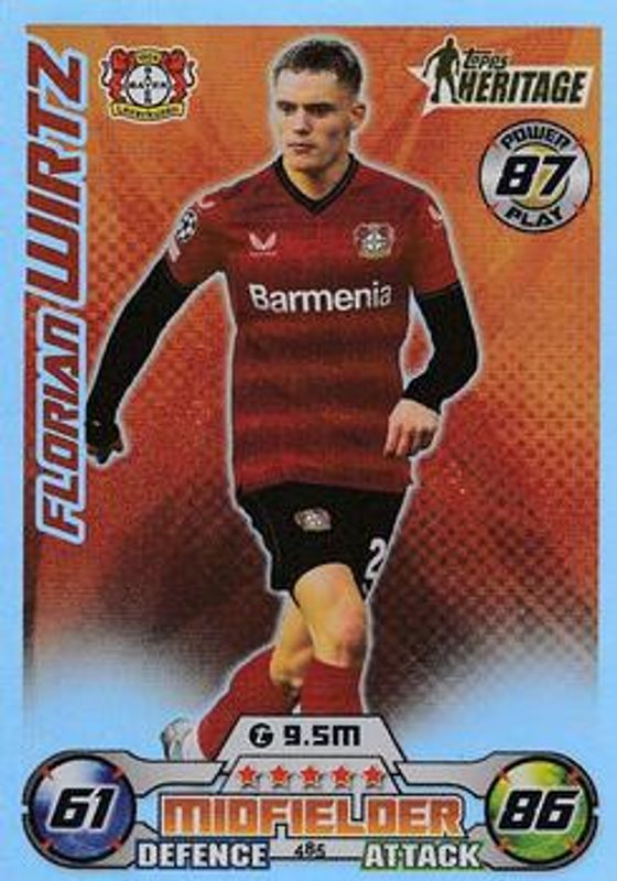 The Florian Wirtz 2022 Topps Match Attax UEFA Champions League & UEFA Europa League #485 Base card is 1 of 8 Florian Wirtz's card variations in the 2022 Topps Match Attax UEFA Champions League & UEFA Europa League set being tracked by Sports Card Investor, including #232 Base, #232 1st Edition, #232 Crystal, #232 Red Foil, and #485 Red Foil.
