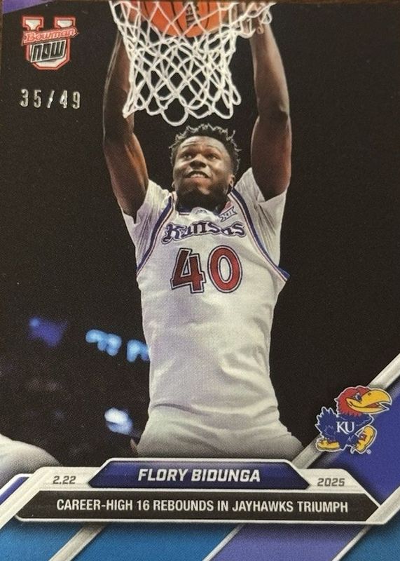 2024-25 Topps Bowman U Now 74 Flory Bidunga Kansas Jayhawks Career 16 Blue 15/49