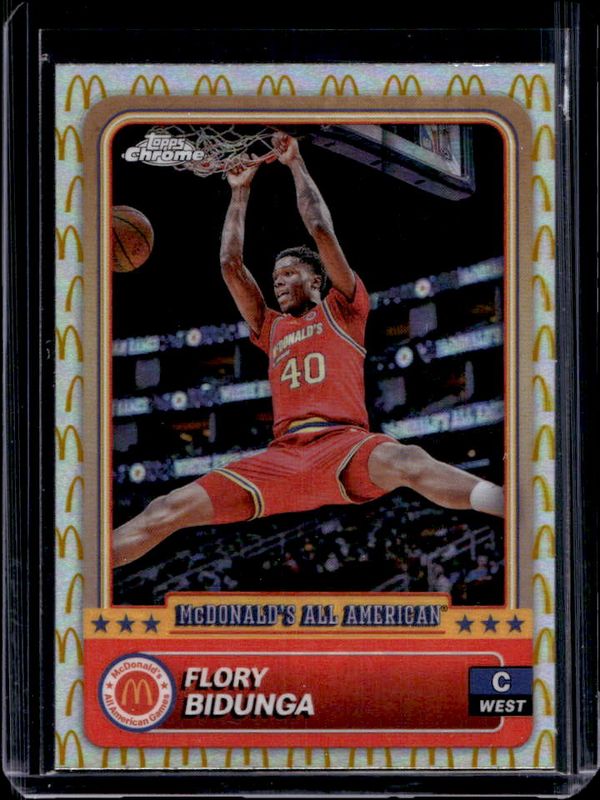 The Flory Bidunga 2024 Topps Chrome McDonald's All-American #35 McDonald's Logo Refractor card is 1 of 112 Flory Bidunga's card variations in the 2024 Topps Chrome McDonald's All-American set being tracked by Sports Card Investor, including #85 Base, #35 Base, #35 Blue RayWave Refractor, #85 Blue RayWave Refractor, and #85 McDonald's Logo Refractor.