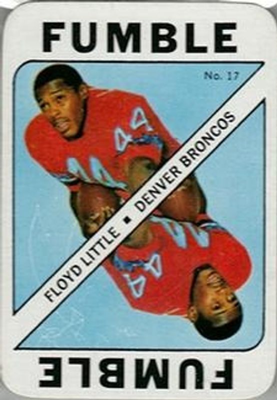 The Floyd Little 1971 Topps #17 Game Inserts card is 1 of 4 Floyd Little's card variations in the 1971 Topps set being tracked by Sports Card Investor, including Base, Posters, and Posters - Glossy.