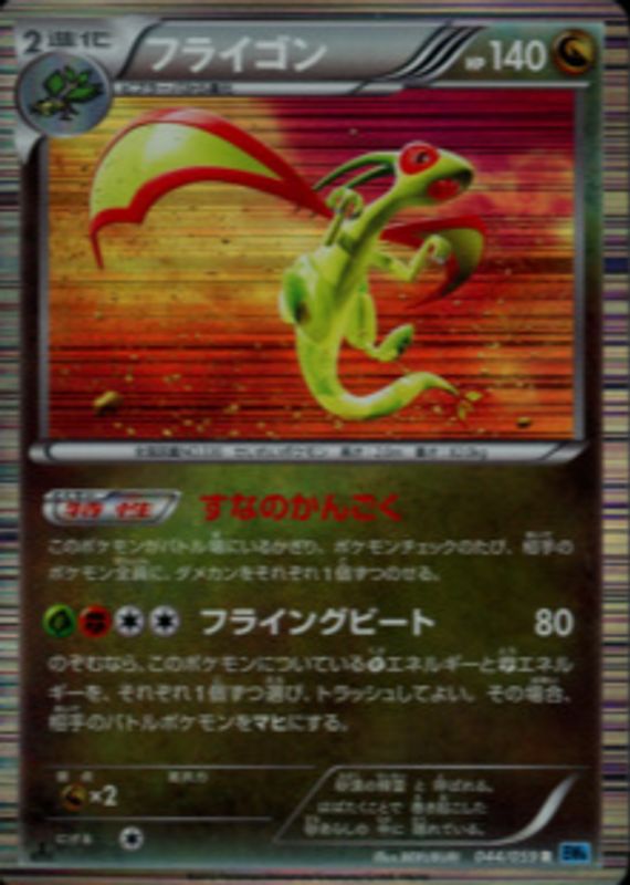 The Flygon 2012 Japanese Black & White: Freeze Bolt #044/059 1st Edition Holo card in Raw TCG (Near Mint) condition has not changed in price in the last 30 days and was last sold for $6.00 .