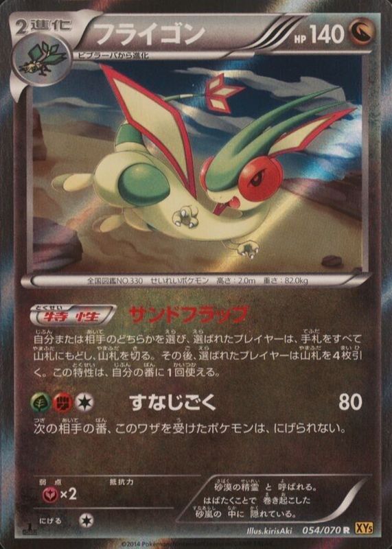 The Flygon 2014 Japanese XY: Gaia Volcano #054/070 1st Edition Holo card in Raw TCG (Near Mint) condition has not changed in price in the last 30 days and was last sold for $3.99 .