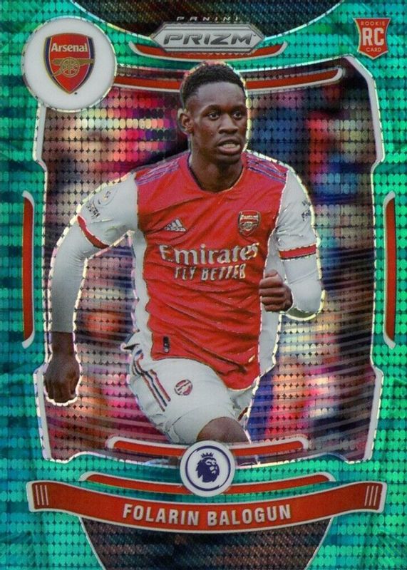 The Folarin Balogun 2021 Prizm Premier League #208 Breakaway Teal /49 Rookie card in Raw condition has not changed in price in the last 30 days and was last sold for $54.33 .