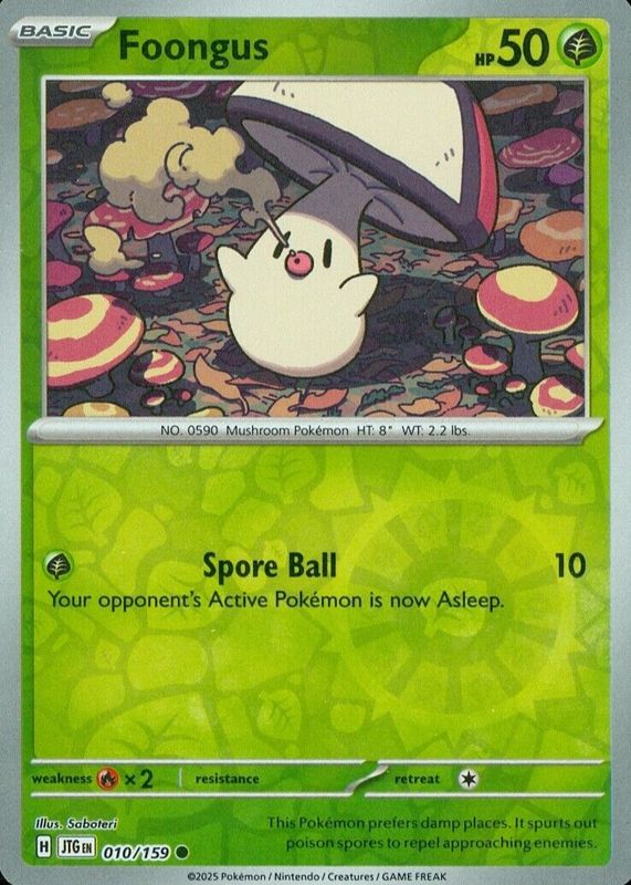 Foongus 2025 Scarlet & Violet: Journey Together #010/159 Reverse Holo RAW TCG (LIGHTLY PLAYED) Price Guide