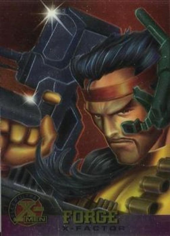 The Forge 1995 Fleer Ultra X-Men Chromium #14 Base card is 1 of 4 Forge's card variations in the 1995 Fleer Ultra X-Men Chromium set being tracked by Sports Card Investor, including #14 Gold Signatures, #10 Alternate X, and #9 Alternate X.