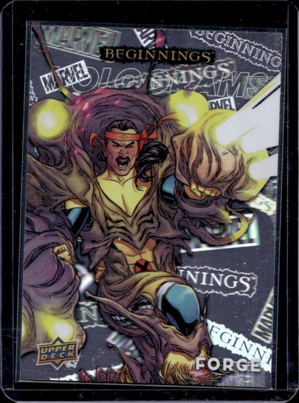 The Forge 2024 Upper Deck Marvel Beginnings Volume 2 Series 2 #H-77 Holograms card is 1 of 23 Forge's card variations in the 2024 Upper Deck Marvel Beginnings Volume 2 Series 2 set being tracked by Sports Card Investor, including Base, Black, Blue Border, Rainbow Foil, and Red Border.