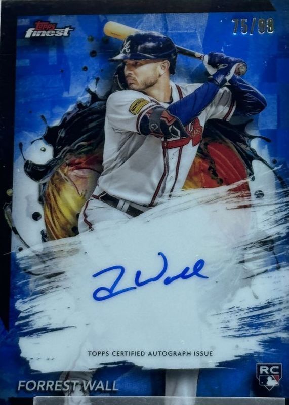 This card is 1 of 11 Forrest Wall's card variations in the 2024 Topps Finest set being tracked by Sports Card Investor, including Finest Autographs, Finest Autographs - Refractor, Finest Autographs - Sky Blue Refractor /150, Finest Autographs - Purple Refractor /125, and Finest Autographs - Green Refractor /75.