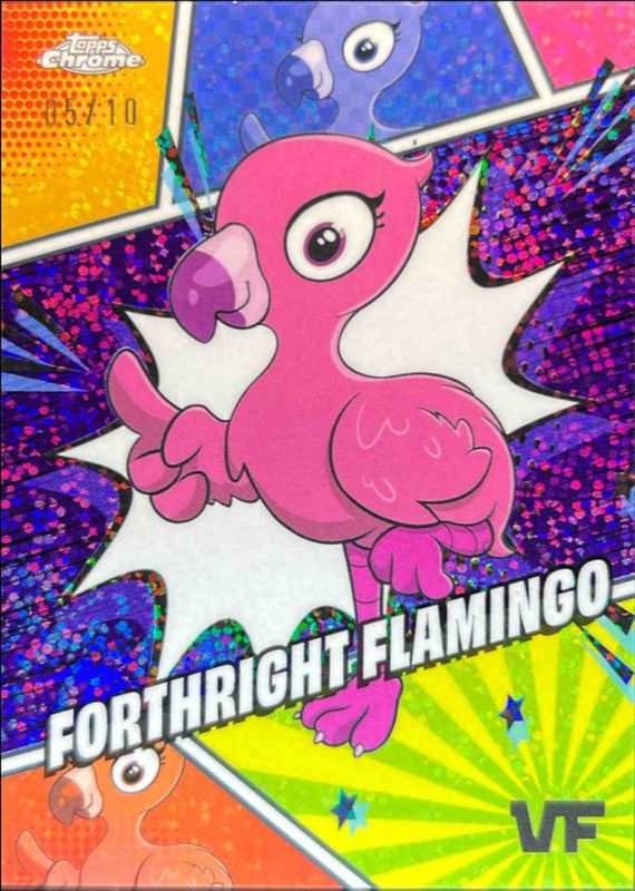The Forthright Flamingo 2025 Topps Chrome VeeFriends #MSS-25 Manga Speckle - Purple Speckle /10 card is 1 of 22 Forthright Flamingo's card variations in the 2025 Topps Chrome VeeFriends set being tracked by Sports Card Investor, including Base, Refractor, Yellow Refractor, Shimmer Refractor /250, and RayWave Refractor /199.