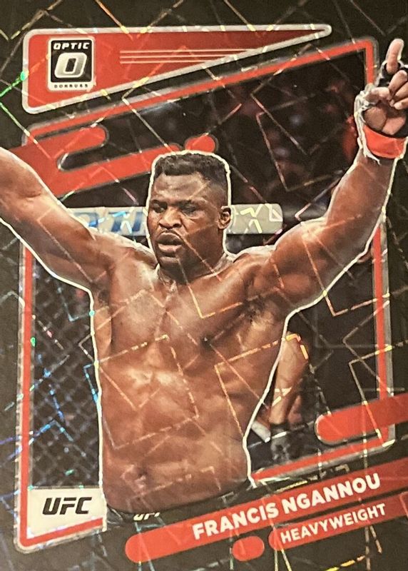 This card is 1 of 18 Francis Ngannou's card variations in the 2022 Optic UFC set being tracked by Sports Card Investor, including Blue Velocity, Holo, Purple, Red /199, and Blue /99.