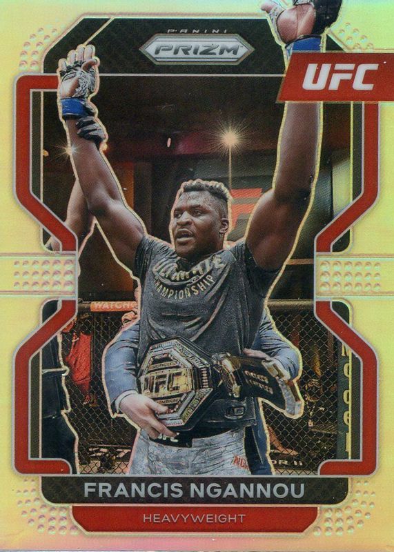 This card is 1 of 24 Francis Ngannou's card variations in the 2022 Prizm UFC set being tracked by Sports Card Investor, including Green, Hyper, Ice, Pink Ice, and Ruby Wave.