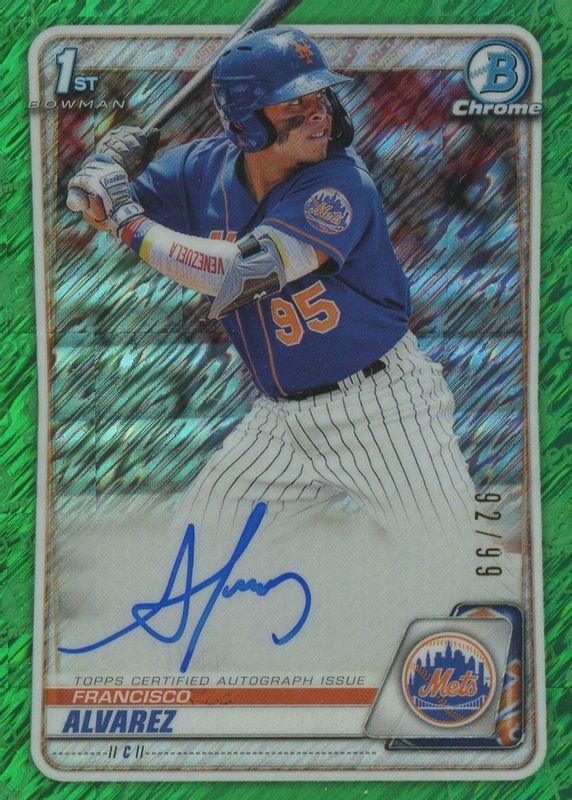 Best Prices Available For Sale of Francisco Alvarez 2020 Bowman Chrome #CPA-FA Prospect Auto - Green Shimmer Refractor /99 (1st)
