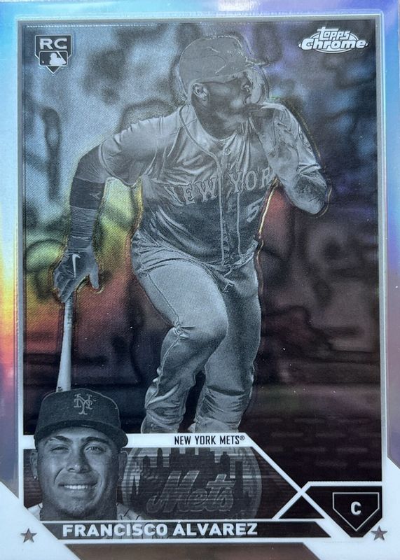 The Francisco Alvarez 2023 Topps Chrome #203 Negative Refractor Rookie card in Raw condition has not changed in price in the last 30 days and was last sold for $3.61 .