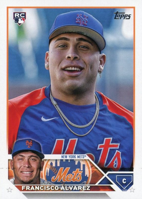 This card is 1 of 20 Francisco Alvarez's card variations in the 2023 Topps set being tracked by Sports Card Investor, including Base, Gold Foil, Rainbow Foil, Royal Blue, and Gold /2023.