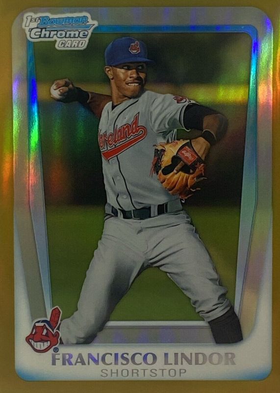 The Francisco Lindor 2011 Bowman Draft #BDPP53 Chrome Prospects - Gold Refractor /50 (1st) card in Raw condition has not changed in price in the last 30 days and was last sold for $343.33 .