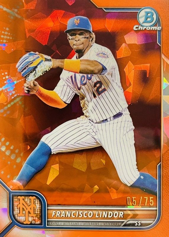 2022 Bowman Chrome Sapphire Francisco Lindor Orange /75 New York Mets #73