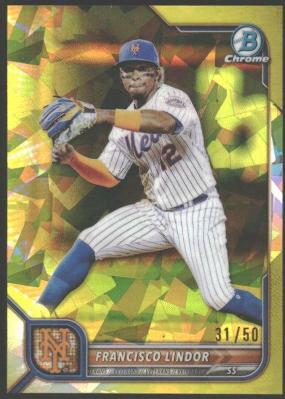 Francisco Lindor 2022 Bowman Chrome Sapphire Edition #73 Yellow /50 RAW Price Guide